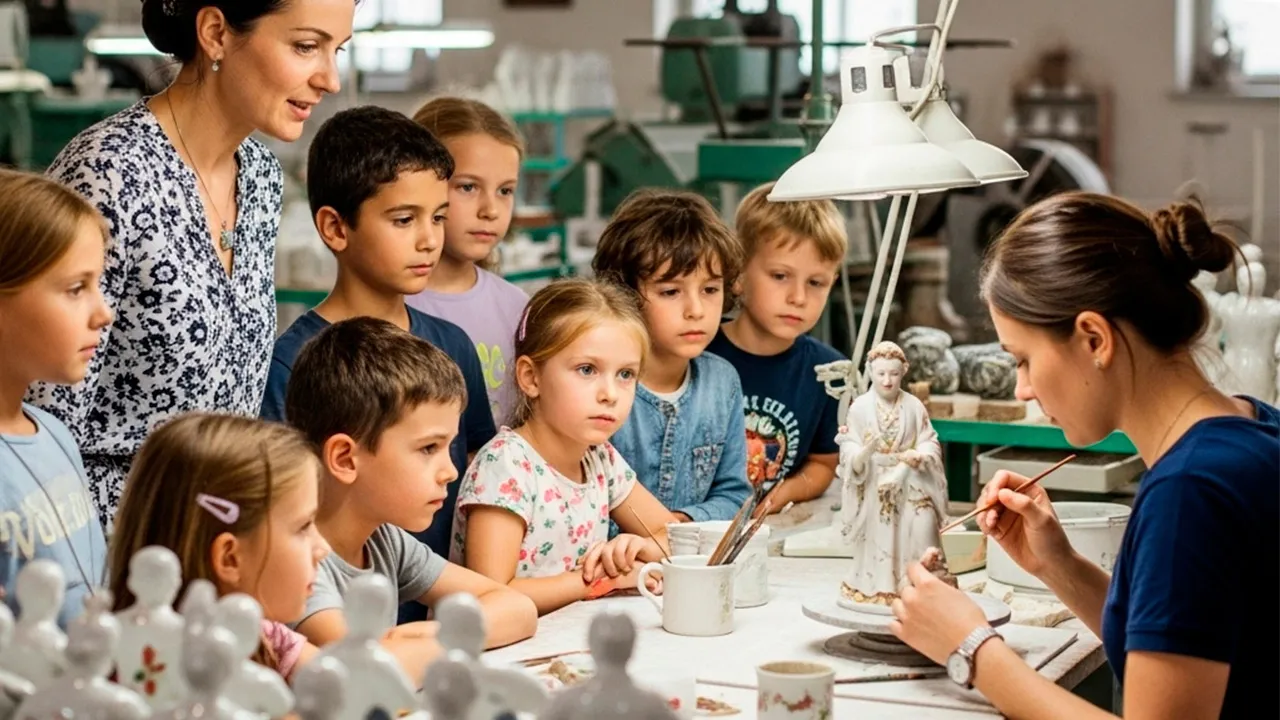 Молодые гости смогут погрузиться в увлекательный мир искусства. Они станут свидетелями того, как простая глина преобразуется в изящные изделия. Они смогут наблюдать весь процесс: от подготовки сырья до обжига и оформления красивыми узорами, которые делают обыденные вещи настоящими произведениями искусства. Каждый этап пропитан многолетним опытом и креативной энергией, которой охотно поделятся профессиональные мастера.